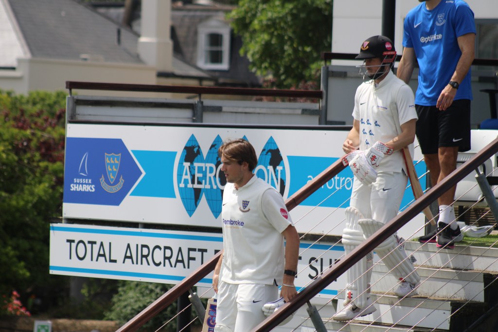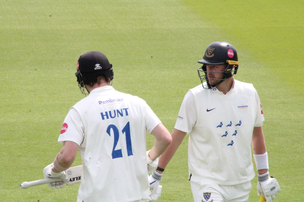 Sussex opted to pair the returning Ollie Robinson with Sean Hunt, with the Guildford-born seamer’s extra pace preferred to the wily metronomy of Ari Karvelas.