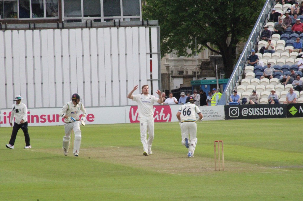 It was just a matter of time thereafter, and though Sussex did splutter along to 150, they had Ollie Robinson caught by Lyth after hitting a nonchalant six into the Spen Cama Pavilion, and Coles – the steadfast presence – caught by mid-on fielder Masood attempting to attack Thompson.